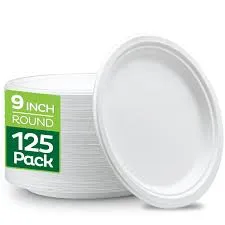 9″ white Bagasse Round plate. 500/CT